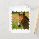 Cavalo maldito parado em um campo, com um rosto muito doce.