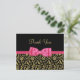 Cartão Postal Chic Black Gold Floral Damask Pink Bow Thank You