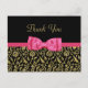 A chic black and gold floral damask thank you postcard with a chic hot pink satin style bow. Personalize this elegant design by adding a personal message. Flat printed image, not metallic or actual bow.