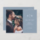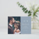Este elegante e moderno obrigado de casamento que vocês cartões postais apresentam um simples design de texto branco e empoeirado que exude o estilo minimalista, com sua foto de casamento pessoal favorita. Adicione suas iniciais ou monograma para torná-las completamente suas.