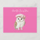 Cartão Postal Chic Pink Beret Brown White Owl Be Seeing You