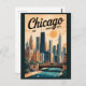 Design de viagem de vetor retrovetor de Chicago. Chicago, a cidade de Windy, em Illinois, é conhecida por seu horizonte icônico, arquitetura de classe mundial, e cena cultural vibrante.