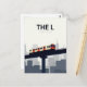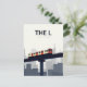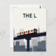 A modern, graphic illustration of the classic Chicago 'L' elevated train running above a silhouette of the city skyline. Captures the iconic urban energy of the Windy City.