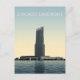 A striking, flat graphic composition featuring the John Hancock Center (875 N. Michigan Ave.) from the lakefront, reflected in the water. A stylish tribute to Chicago architecture.