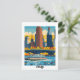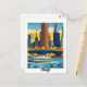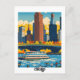 Uma ilustração vibrante e colorida do horizonte de Chicago, com arranha-céus icônicos como a Torre Willis e a Torre Tribune. A imagem mostra a grandeza arquitetônica da cidade, com foco nos estilos moderno e Art Deco.