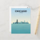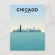 A flat-vector illustration of the Chicago skyline, featuring prominent towers like the Willis Tower, rising above the deep blue waters of Lake Michigan.