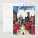 Cartão Postal Chicago Skyline Painting – Windy City Urban Art