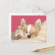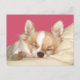 Creme ou faun e Chihuahua, de cabelos longos, coloca a cabeça em um travesseiro e snoozes em um cartão postal de fotos de sono pacífico