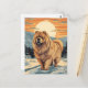 Cartão Postal Chow Chow nas montanhas nevadas durante o pôr do s