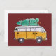 Linda pintura aquosa de um carregando de campervan laranja numa árvore de Natal.
