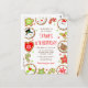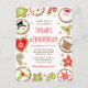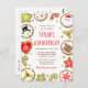 This cute and fun birthday invitation features iced cookies with adorable characters such as a snowman, reindeer and Santa Claus. Holly, candy cane and snowflakes add a festive touch. The text combines handwritten script and sans serif fonts for a stylish and modern look. This is perfect for a Christmas themed birthday party.