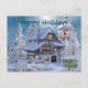 Cartão Postal Christmas Greeting Winter Snowman Blue Rustic