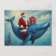 Cartão Postal Christmas Santa and Whale Surreal