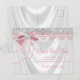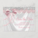 Cartão postal de aviso prévio de chuva de bebê rosa com cetim branco elegante e lindas pérolas e laço rosa diamantado em um fundo de cetim branco. Este lindo cartão postal rosa é facilmente personalizado com o texto de sua escolha.