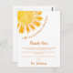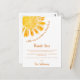 Este cartão de agradecimento de festa de bebê apresenta o texto "Um pequeno raio de sol está quase chegando!" com um sol amarelo em aquarela.