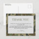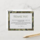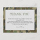 Envie um agradecimento especial aos convidados que compareceram ao chá de bebê. Este desenho camuflado é perfeito para o novo menino. Se você gosta de eventos ao ar livre, como caça e pesca, ou se está no exército, esta é uma escolha ideal. Adicione sua mensagem pessoal e seu nome. Se desejar, você pode excluir o nome e assinar à mão antes de enviar.