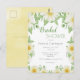 Um cartão-postal de chuva de noiva muito bonito com margaridas brancas e amarelas em um fundo rústico de aquarela. Um convite econômico perfeito para o seu dia especial celebrando o seu casamento próximo.