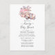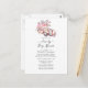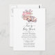 Convite de chuva de presente de casamento ou baby shower com um carro esportivo antigo adornado com rosas em aguarela rosa personalizável para os detalhes do seu evento.