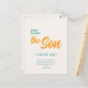 Agradeça familiares e amigos pelos presentes no seu chá de bebê com tema solar com este lindo cartão de agradecimento. Ele apresenta o texto "Aqui Vem o Filho" em tipografia estilosa com um sol aquarelado em cores vibrantes sobre um fundo creme suave. Fácilmente personalizável. Aquarela Original © Michele Davies.