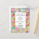 Uma profusão de cores florais frescas para o seu chá de noiva de primavera ou verão. Aquarelas em uma paleta de cores e uma abundância de flores enquadram um retângulo central arredondado. Fontes bonitas escrevem todos os detalhes importantes para homenagear a noiva.