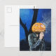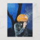 Um cartão-postal assustador de Halloween com a obra de arte pastel, “The Headless Biker”. Esta ilustração apresenta um fantasma de cabeça de abóbora vestindo um casaco de couro fumando um cigarro em uma noite fria e escura de outubro. Arte original: Pastéis em papel. Direitos autorais de Dominic A. White. Todos os direitos reservados.