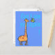 Num dia azul, a girafa engraçada de desenho animado encontra um pássaro colorido no nível dos olhos. Adicione suas próprias palavras a este Cartão-postal personalizável e colorido!