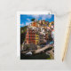 Os edifícios coloridos do Cinque Terre brilham sob os céus azuis do final do Verão em Itália. Este cartão postal é totalmente personalizável.