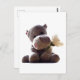 Cartão Postal Cinza Feliz Hippo Segurando Daisy, Foto de Amor Bo