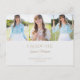 Este cartão-postal de anúncio de graduação minimalista apresenta três fotos, uma simples tipografia e uma cinza e uma paleta dourada. Na frente, as três fotos são exibidas ao longo do topo. Por baixo das fotos, o "Formando" é escrito na tipografia moderna de todos os bonés, com o nome do formando escrito na caligrafia abaixo. Na base, adicione a escola de formando e o ano de graduação. A tipografia é ouro contra fundo de cinza leve. Na parte traseira do cartão postal de formando, você pode adicionar uma mensagem aos destinatários e/ou informações de festa de formatura.