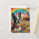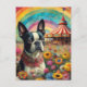 Um adorável Boston Terrier em um campo de flores silvestres com uma tenda de circo ao fundo A gerou arte
