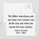 "Meus colegas americanos, não perguntem o que seu país pode fazer por você, perguntem o que você pode fazer pelo seu país." - John F. Kennedy