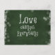 O Amor Muda Tudo. O fundo do quadro em verde, com bordas claras brancas, enquadra esta frase inspiradora de amor, "o amor muda tudo".