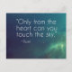 Uma citação favorita de Rumi com belos antecedentes celestes. O texto diz "Só do coração é que se pode tocar o céu"