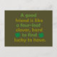 Um bom amigo é como um trevo de quatro folhas: difícil de encontrar e sortudo por ter. Não há nada que eu não faça por aqueles que são realmente meus amigos. Não há nada como um amigo realmente leal, confiável e bom. Este design de texto é perfeito para amantes de provérbios e citações sábias! Fica ótimo nesta fonte e cor. Também pode ser uma ideia de presente original para o Natal e aniversário! Se você gostou do que vê, confira mais designs e opções. Fique seguro e seja feliz