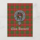 Cartão postal com o fundo tradicional moderno do Clan Burnett escocês com crachá de crista clã e texto personalizável.