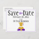 Envie este roxo minimalista e ouro "Salve a data" para a reunião de sua classe neste anúncio de cartão postal de modelo. Personalize o texto nos campos modelo para frente e verso ou clique em personalizar para selecionar um estilo de tipo, tamanho e cor preferidos.
