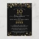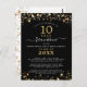 Convite postal de reunião de classe moderna e elegante para qualquer reunião de ano (mostrada para 10 anos) com estrelas e luzes douradas, tipografia elegante de script manuscrito e um fundo de cores personalizado (mostrado em preto) que você pode mudar para a cor da sua escola ou para a cor do tema da festa. Todo texto é editável para fazer o seu. ASSISTÊNCIA: para obter ajuda sobre modificação ou personalização do design, alteração de cor ou transferência do design para outro produto ou para coordenar itens, entre em contato com o designer ANTES DE ENCOMENDAR, por meio da guia MENSAGEM de bate-papo Zazzle abaixo ou envie um email para makeitaboutyoustore@gmail.com.