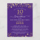 Convite postal de reunião de classe moderna e elegante para qualquer reunião de ano (mostrada para 10 anos) com estrelas e luzes douradas, tipografia elegante de script manuscrito e um fundo de cores personalizado (mostrado em roxo) que você pode mudar para a cor da sua escola ou para a cor do tema da festa. Todo texto é editável para fazer o seu. ASSISTÊNCIA: para obter ajuda sobre modificação ou personalização do design, alteração de cor ou transferência do design para outro produto ou para coordenar itens, entre em contato com o designer ANTES DE ENCOMENDAR, por meio da guia MENSAGEM de bate-papo Zazzle abaixo ou envie um email para makeitaboutyoustore@gmail.com.