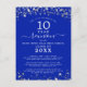 Convite postal de reunião de classe moderna e elegante para qualquer reunião de ano (mostrada para 10 anos) com estrelas e luzes prateadas, tipografia elegante escrita à mão e um fundo de cor personalizado (mostrado em azul real) que você pode mudar para a cor da sua escola ou para a cor do tema da festa. Todo texto é editável para fazer o seu. ASSISTÊNCIA: para obter ajuda sobre modificação ou personalização do design, alteração de cor ou transferência do design para outro produto ou para coordenar itens, entre em contato com o designer ANTES DE ENCOMENDAR, por meio da guia MENSAGEM de bate-papo Zazzle abaixo ou envie um email para makeitaboutyoustore@gmail.com.