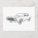 Cartão Postal Clássico Chevy Chevelle Muscle Car Preto e Branco