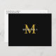 Cartão postal elegante com monograma personalizado com nome em dourado e branco em um fundo preto. O verso apresenta um endereço de retorno.