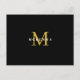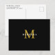 Cartão postal elegante com monograma personalizado com nome em dourado e branco em um fundo preto. O verso apresenta um endereço de retorno.