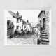 Um esboço preto e branco desenhado à mão de Clovelly, Devon, uma aldeia histórica de pesca famosa pela sua rua esfregada, casacos de pedra e porto pitoresco. Esta ilustração da linha de safra captura o charme da Inglaterra costeira e seu patrimônio eterno. Perfeito para amantes de viagem, história marítima e cenas tradicionais de vilas.