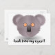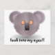 Urso koala hipnótico engraçado e engraçado com olhos cor de laranja, dizendo olhe nos meus olhos