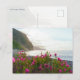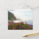 This scenic postcard captures the breathtaking coastline of São Vicente, Madeira, as the soft glow of sunset hits the dramatic cliffs. Vibrant pink wildflowers in the foreground frame a tranquil view of the Atlantic Ocean and the rugged northern shore. It is an ideal keepsake for lovers of botanical beauty, coastal landscapes, and the unique charm of the Madeira island.