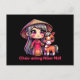Garota vietnamita bonitinha com cavalo para tocar no Ano do Cavalo.