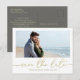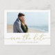Um elegante e simples cartão de casamento guardado com um moderno Código QR e um moderno e elegante casal fotográfico, um URL online de código QR, um site de casamento de endereços Web, um texto de fonte de tipografia de tendência na moda, um cartão postal amigável ao orçamento, um ouro neutro, um mínimo de salvamento dos nossos cartões de data, um roteiro de caligrafia criativo, um simples cartão com fotos moderno casual salvar a data, um código de casamento scannable scannable