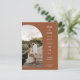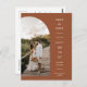 Este cartão postal de convite para anúncio de noivado apresenta uma caligrafia elegante e uma letra simples de tipografia sans serif com uma fotografia em forma de arco e um código QR num fundo de terracota para um olhar minimalista e moderno limpo, que é uma bela forma de informar sobre o seu próximo casamento. A simplicidade desta design adiciona um toque de elegância ao seu casamento, exceto os cartões de convite. Funciona bem com muitos temas de casamento e definitivamente um excelente extra para o seu casamento. Basta personalizar os nomes e o texto em alguns passos fáceis e personalizar o cartão-postal do convite com sua foto do casal feliz e substituir o Código QR pelo seu no verso para dar um toque pessoal agradável ao seu cartão-postal. Nota: A elegante caligrafia dos termos "Salvar a data" e "convite formal para seguir", bem como as linhas e outros trabalho de arte gráficos e elementos não podem ser editados, apagados ou movidos. Eles estão consertados.