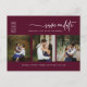 Este cartão-postal mostra um elegante estilo moderado e minimalista de uma colagem de três (tri) fotos com uma caligrafia moderna da frase "Salvar a Data" e fontes elegantes de Serif para uma aparência minimalista e moderna e limpa sobre um fundo burgundy, que é uma bela maneira de informar sobre seu próximo casamento. Anuncie à sua família e amigos que vai casar com este cartão postal, para salvar o cartão postal e adicionar um toque pessoal com belas fotografias de si e da sua próxima metade. A simplicidade desta design adiciona um toque de elegância ao seu casamento. Funciona bem com muitos temas de casamento e definitivamente um excelente extra para o seu casamento. Basta personalizar os nomes e o texto em alguns passos fáceis e personalizar o cartão postal com sua foto do casal feliz e substituir o Código QR pelo seu. Observe que o texto "Salvar a data" juntamente com outros trabalho de arte gráficos e elementos não podem ser editados, alterados ou excluídos. Se precisar alterar a cor, você pode personalizar o cartão-postal. Você pode personalizar e personalizar o cartão postal para ajustado das necessidades de seu evento de casamento e clicar em personalizar o cartão postal.