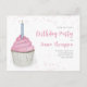 Este design apresenta um convite de cupcake giro para crianças cor-de-rosa com borrifadas azuis de velas de aniversário, com um código QR para mais informações e o URL da sua festa. uma festa divertida, um roteiro de caligrafia de na moda, um doce doce doce doce doce doce doce bolo de sobremesa, com cores pastel tipografia, um adorável convite para crianças festas de aniversário, um estilo glacé rosa-d'água, um cupcake de aniversário tema do bolo para crianças festa de aniversário convites de cartão postal amigáveis